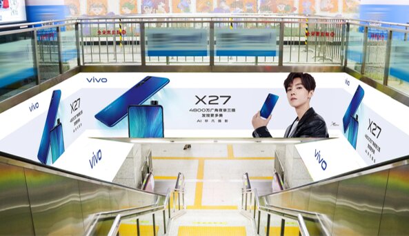 媒體形式:U型墻貼 ??????地鐵線路:1/2號(hào)線 媒體位置:站廳到站臺(tái)層主樓梯兩側(cè)的墻面
