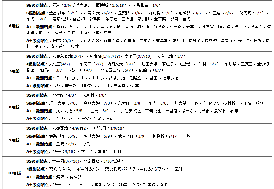以上關(guān)于成都地鐵廣告價(jià)格均為報(bào)價(jià)參考,具體折扣優(yōu)惠請咨詢第一戶外,電話:400-998-3268。