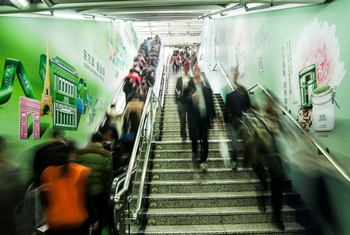 重慶地鐵廣告投放案例圖-電梯貼畫 |