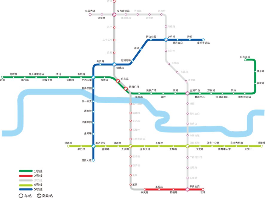S++站點(diǎn):萬象城、朝陽廣場、金湖廣場 、火車東站、廣西大學(xué) S站點(diǎn):埌東客運(yùn)站、南湖、麻村、新民路、動物園 A++站點(diǎn):百花嶺、鳳嶺、白蒼嶺、魯班路、清川、西鄉(xiāng)塘客運(yùn)站、民族大學(xué)