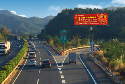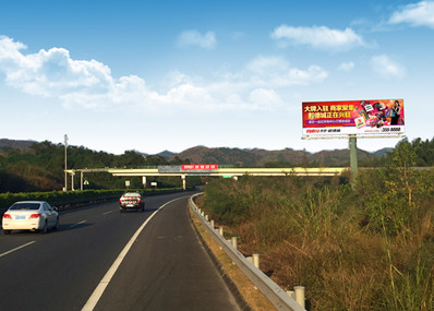 媒體位置:天汕高速梅州東收費站雙面噴繪廣告牌 媒體尺寸:30m(寬)*5.5m(高)*2面 媒體報價:37萬元/年