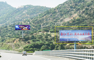 媒體位置:海平互通A17K+450M 媒體形式:雙面立柱廣告牌 媒體規(guī)格:寬18m*高6m*2面 媒體報價:95萬/年 制作費:25元/㎡