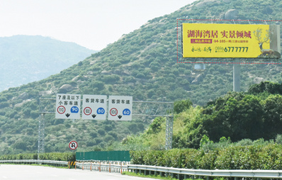 媒體位置:港尾樞紐互通收費站1 媒體形式:雙面立柱廣告牌 媒體規(guī)格:寬18m*高6m*2面 媒體報價:95萬/年 制作費:25元/㎡ |