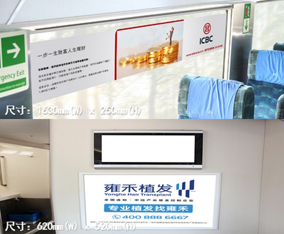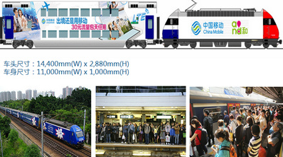 媒體形式:車身貼 車型:雙層 媒體格式: 車頭:14,400(w)x2,880(h)mm 車身:11,000(w)x1,000(h)mm 媒體數(shù)量:24個/列車 媒體報價:88萬元/4周/列 |
