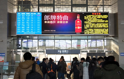 媒體位置/形式:候車大廳閘機(jī)口LED屏 媒體編號:ZDJC-L-01 媒體規(guī)格(m):3.98*2.93 媒體數(shù)量:1塊 媒體報(bào)價(jià):15萬元/月/15秒,11萬元/月/10秒,6萬元/月/5秒 |