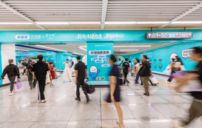 長(zhǎng)沙地鐵站廳換乘區(qū)域廣告“墻貼+包柱+燈箱”構(gòu)成的品牌社區(qū)形成三維立體包圍式空間。墻貼覆蓋乘客平視范圍,包柱占據(jù)動(dòng)線焦點(diǎn),燈箱強(qiáng)化頂部照明,多維度攔截視覺動(dòng)線;結(jié)合品牌通道的連續(xù)墻面敘事,構(gòu)建沉浸式品牌環(huán)境,視覺沖擊力碾壓?jiǎn)我幻襟w形式。品牌社區(qū)地鐵廣告可打造互動(dòng)打卡點(diǎn),包柱可設(shè)計(jì)AR掃碼互動(dòng),燈箱可展示系列主題畫面,三者協(xié)同實(shí)現(xiàn)“品牌世界”的場(chǎng)景化構(gòu)建,激發(fā)社交媒體二次傳播。