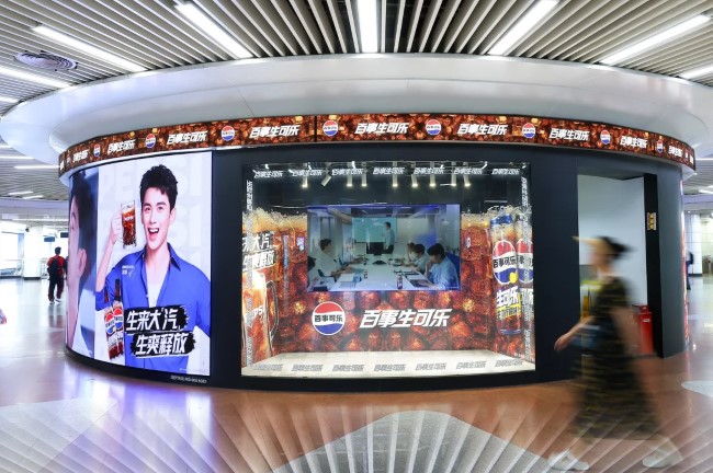廣州地鐵公園前站炫彩品牌專(zhuān)區(qū)廣告帶來(lái)空間沉浸式五維攻擊,環(huán)形燈箱挑高8米頂部環(huán)形光帶構(gòu)建視覺(jué)圣殿穹頂,俯視性壓制中庭全域;地貼踩踏式媒體將品牌烙印植入行走本能,日均踩踏量超百萬(wàn)次;墻貼+窗貼立面包圍360°品牌墻;4屏矩陣98寸LCD+3塊LED構(gòu)成動(dòng)態(tài)信息反應(yīng)堆,像素密度碾壓周邊站廳。尤其適用于新消費(fèi)、智能科技、文旅等需年輕化破圈的高勢(shì)能行業(yè)。
