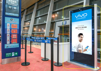 媒體位置/形式:F2層國內(nèi)出發(fā)西指廊候機區(qū)巨型站立式燈箱