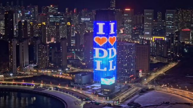 大連南海中心A座地標(biāo)燈光秀廣告投放,大連樓體LED大屏廣告